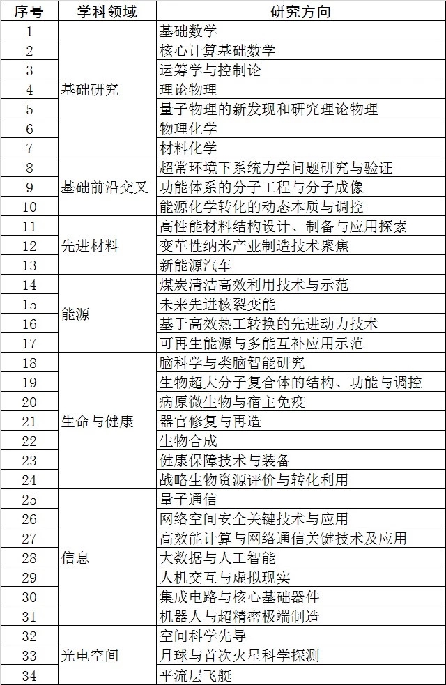 9.申报项目须为下表中规定的研究方向: